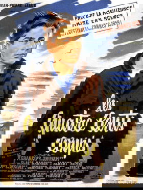 Les Quatre cents coupscom Claire Maurier, Jean-Pierre Léaud, Albert Rémy, Jeanne Moreau, Jacques DemyAntoine Doinel tem quatorze anos e vive em Paris com seus pais. Punido por seu mestre, repreendido pela mãe e pouco incentivado pelo padrasto, Antoine está desolado. Ele prefere vagar por Paris e, durante uma de suas andanças, descobre sua mãe com seu amante. Após faltar à escola, ele inventa uma desculpa para justificar sua ausência: a morte de sua mãe. Mentira rapidamente descoberta, ele foge por Paris à noite. Sua mãe o perdoa, mas ele é expulso da escola e decide se refugiar na casa de seu amigo René. Para sobreviver, ele rouba uma máquina de escrever do padrasto, esperando vendê-la no Mont de Piété, mas é pego em flagrante. Seus pais o enviam para um centro de reabilitação para delinquentes, do qual ele consegue escapar.